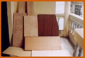 mahogany, maple, rose wood, ebony, shellac, lacquer